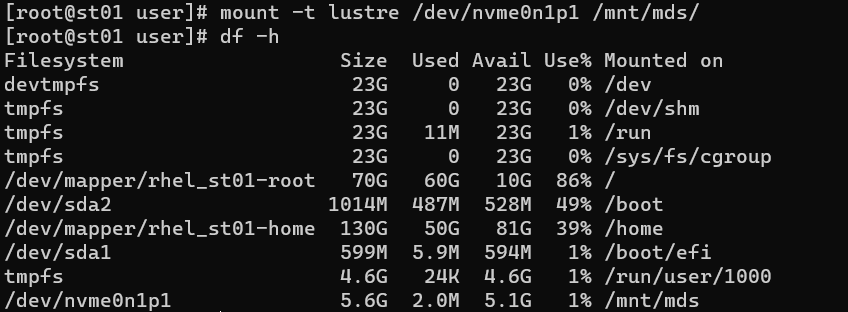 I am using Redhat 8.6 ( Linux 4.18.0-372.9.1.el8_lustre.x86_64)